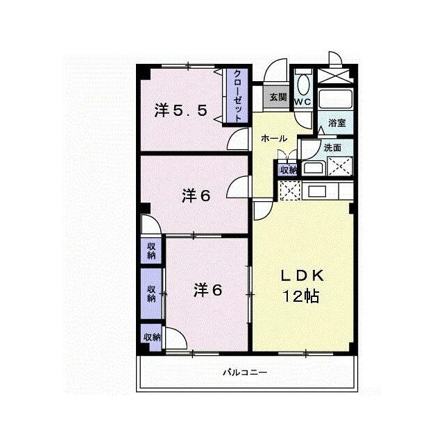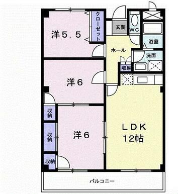 3LDK(洋6・洋6・洋5.5・LDK12) |